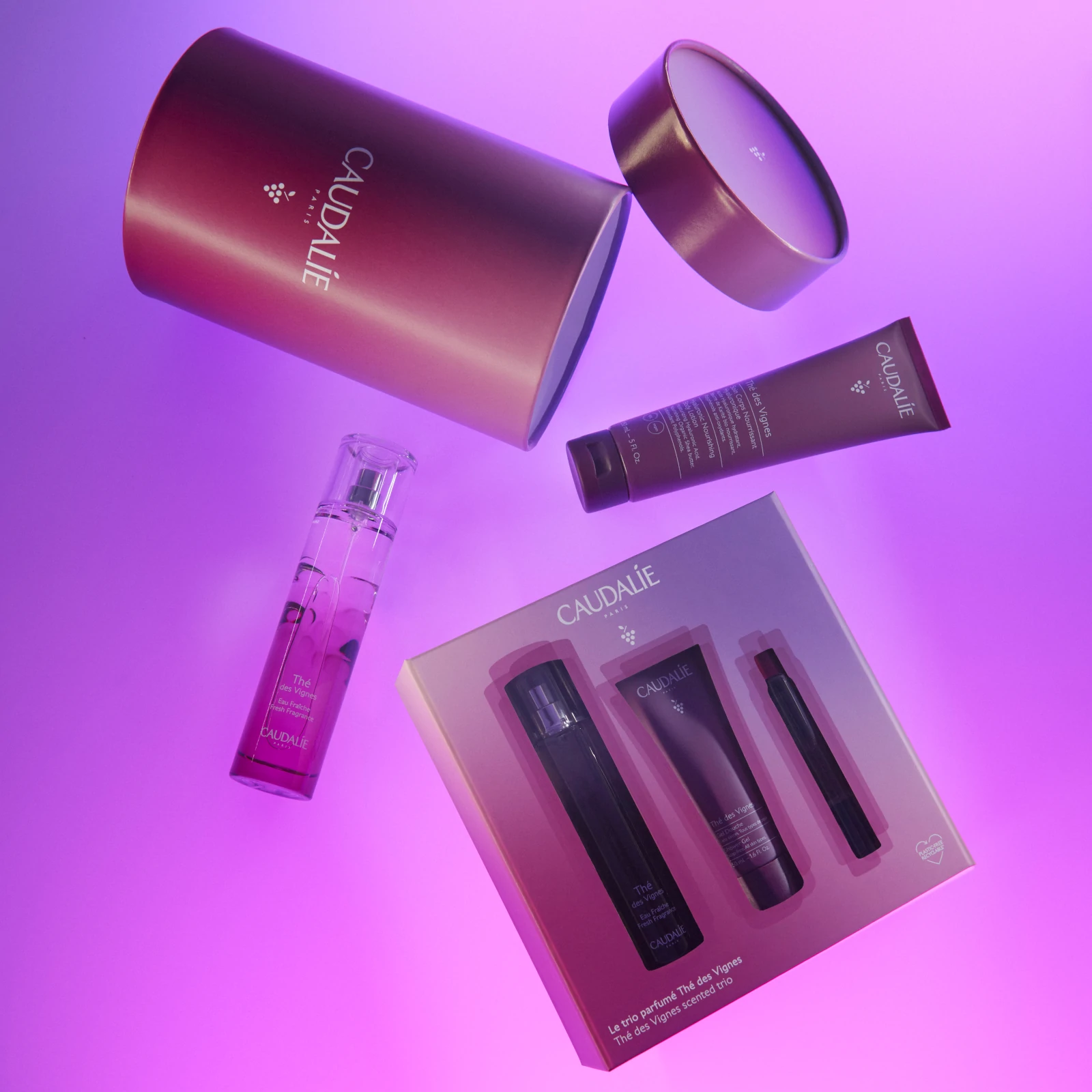 Caudalie thé des vignes fragrance duo contains two essential cares with a seductive, enveloping, and light aroma with energizing notes, characteristic of Caudalie. Let yourself be seduced by the Thé des Vignes range and its iconic products!