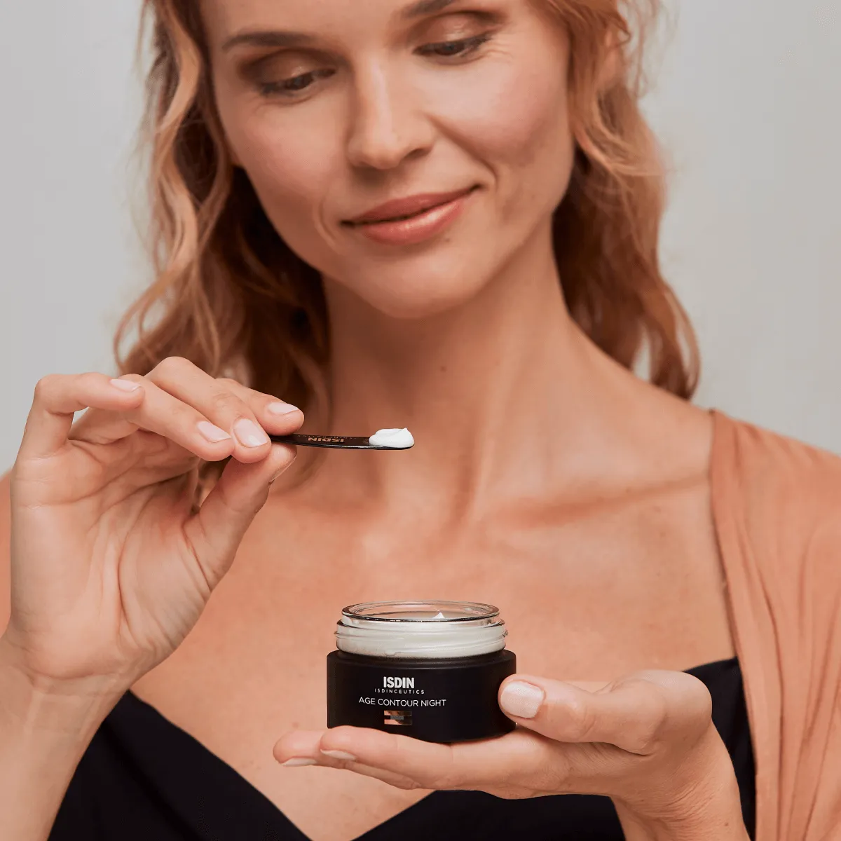 Isdin Isdinceutics age reverse night cream is a repairing treatment enriched in Melatonin, which stimulates antioxidant defenses to fight the aggressions suffered during the day. In addition, it delays the formation of advanced glycation end products (A.G.E.) that can decrease the quality and functionality of collagen and elastin fibers. In other words, it prevents the stiffening of the skin’s supporting fibers, and their consequent breakage and sagging.