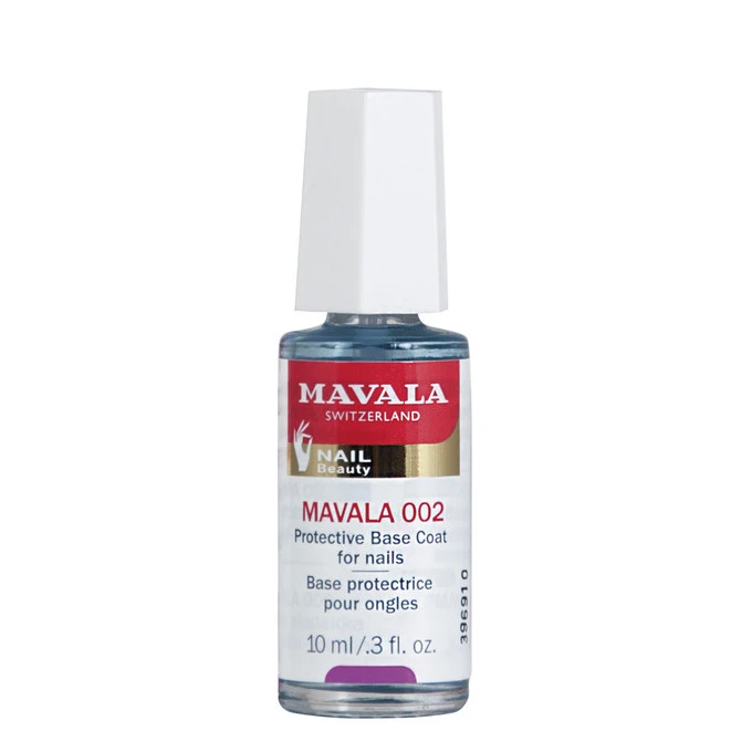 Mavala 002 double action protective base coat. Mavala 002 double action protective base coat allows to isolate the plate of the nail. So that the colored pigments of the varnish are not directly in contact with the nail, to protect it from yellowing. On the other hand, its slightly sticky formula allows a perfect adhesion of the varnish and prolongs its duration. If you have already tried our product, please leave your opinion in the comments. Applies on the entire surface of the net nail. This application must be followed by the installation of a varnish and / or fixative. Because the product, even dry, remains slightly sticky.