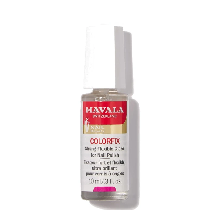 Mavala colorfix ultra-shiny, strong and flexible top coat. Mavala colorfix ultra-shiny strong and flexible top coat is an colorfix with a colorless topcoat, reinforced with acryl, which forms a shiny, tenacious, hard but flexible film. Which fixes the varnish, protects it from flaking and prolongs its hold. If you have already tried our product, please leave your opinion in the comments. When the last layer of nail polish is dry, apply colorfix over the entire surface of the nail. While projecting slightly under the free edge of the nail, if possible. Leave to dry well. It will revive the glow of the nail polish and will prolong its hold.