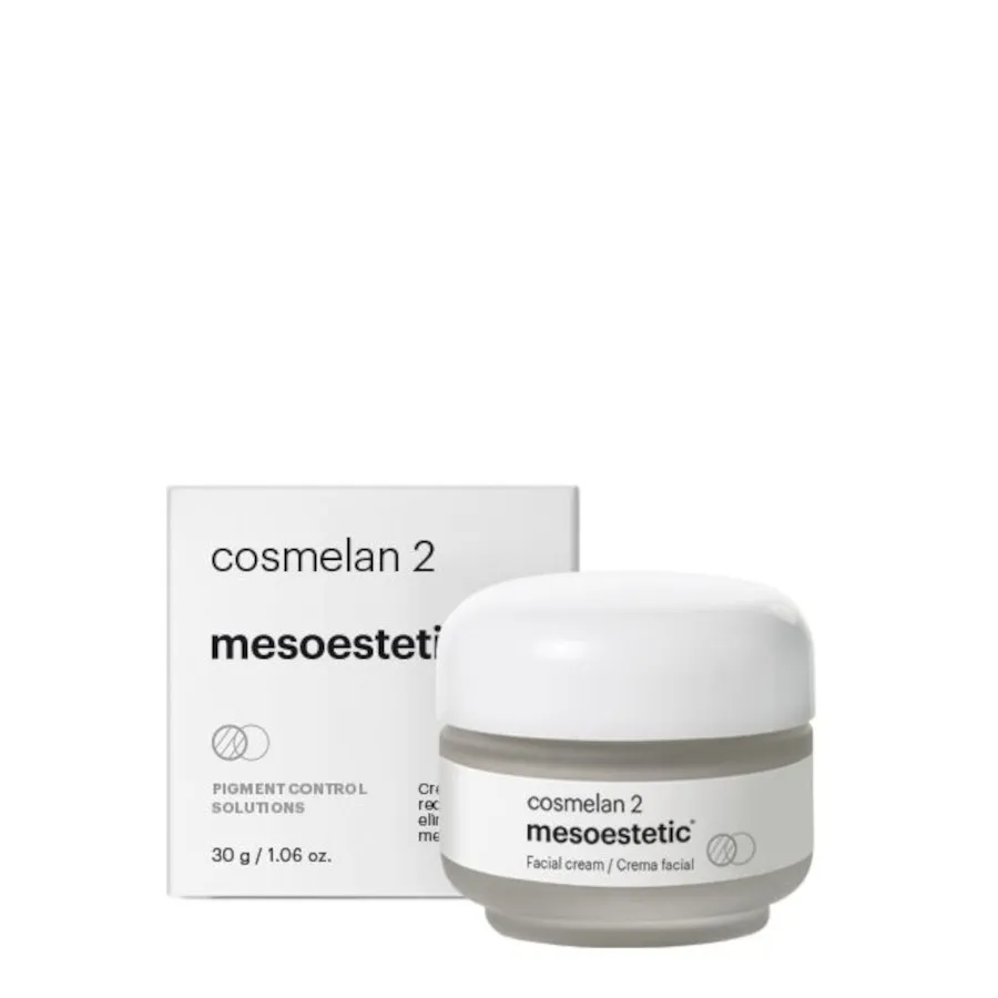 Mesoestetic Cosmelan 2 is a depigmenting cream with a high capacity to regulate the production of melanin. Indicated for the treatment of hyperpigmented spots of melanic origin. And suitable for all skin phototypes. Cosmelan 2 is highly effective in the treatment of various types of pigmentation. Such as, melasma, chloasma, age or senile spots, lentigines, spots induced by oral contraceptives, postinflammatory, etc.
