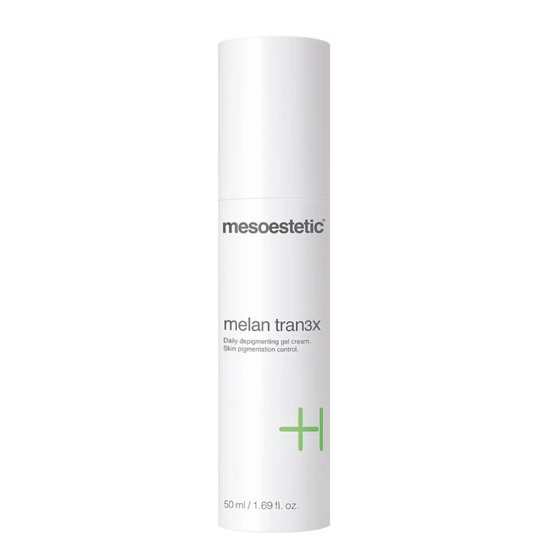 Mesoestetic Melan Tran3x daily depigmenting gel cream is indicated to reduce imperfections associated with pigmentation, regardless of the type of dark spot. Developed in a gel-cream texture of fast absorption, it presents an excellent penetration in the skin.