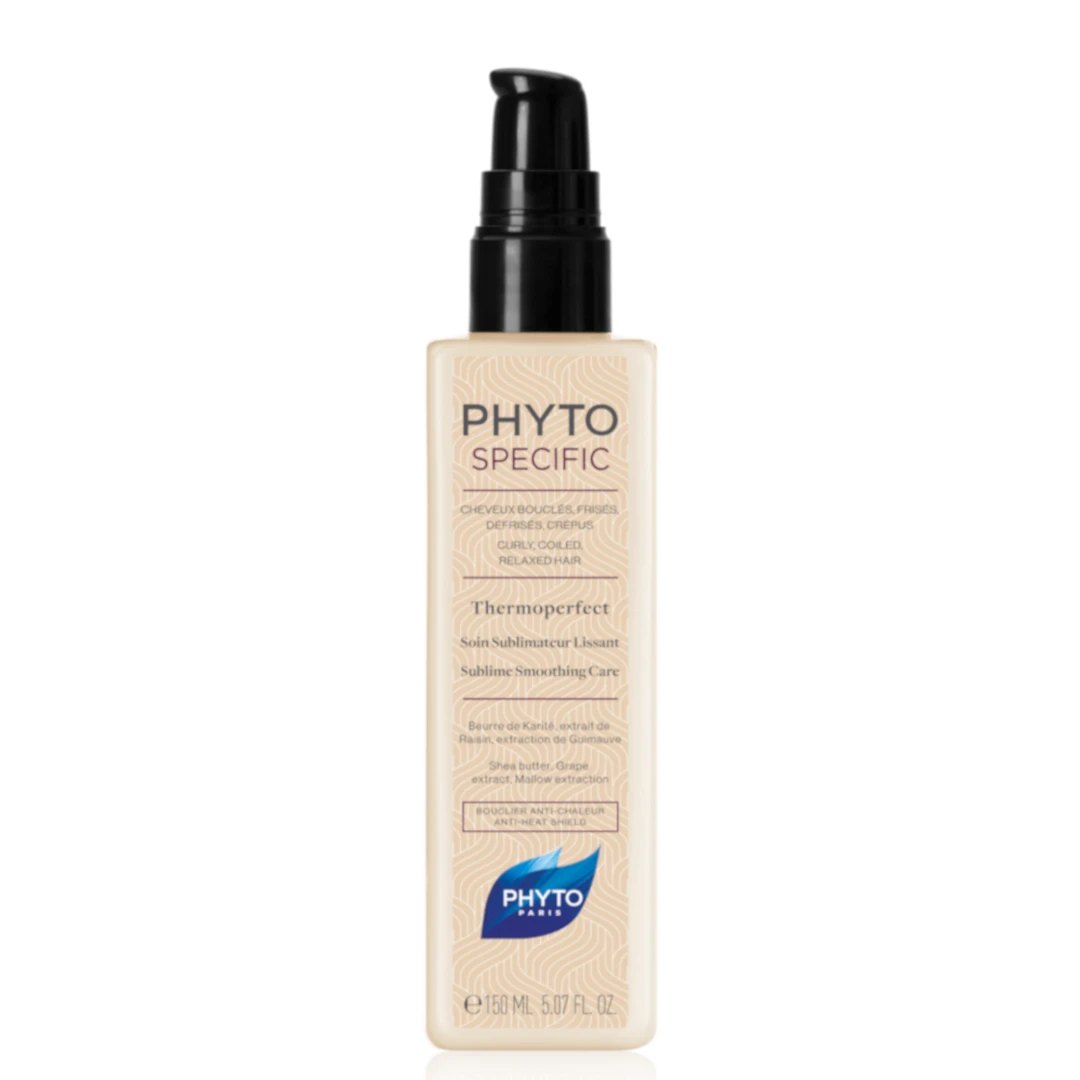 Phyto phytospecific thermoperfect sublime smoothing care… Phyto phytospecific thermoperfect sublime smoothing care is a lightweight, non-greasy formula that smoothes without the build-up of silicones and mineral oils while instantly calming flyaways. It also eliminates frizz and allows hair to maintain natural movement and manageability. This sublime serum smoothes hair to perfection and protects while heat-styling. Powered by the biomimetic technology of the Jericho Rose, which can be found in the harshest of desert climates, Thermoperfect is a light-weight smoothing serum that safeguards hair and delivers heat protection up to 430-degrees when using hot tools. The innovative “protection shield” technology offers unsurpassed protection against heat, breakage, dryness, and oxidative stress. Benefits… *Smooths and prevents frizz *Provides heat protection *Prevents and repairs breakage *Hydrates and gives shine VEGAN | PARABEN-FREE | SULFATE-FREE | SILICONE-FREE | GLUTEN-FREE | PHTHALATES FREE | MINERAL OIL FREE Key Ingredients… *Shea Butter: Intensely rich in fatty acids and vitamins, it nourishes the fiber and provides shine and protection to hair. *Grape Extract: Will prevent heat damage by protecting the hair fiber from oxidative stress. *Mallow Extraction: Acting as a humectant by retaining water, it guarantees the hydration of the hair and softness of the hair fiber.