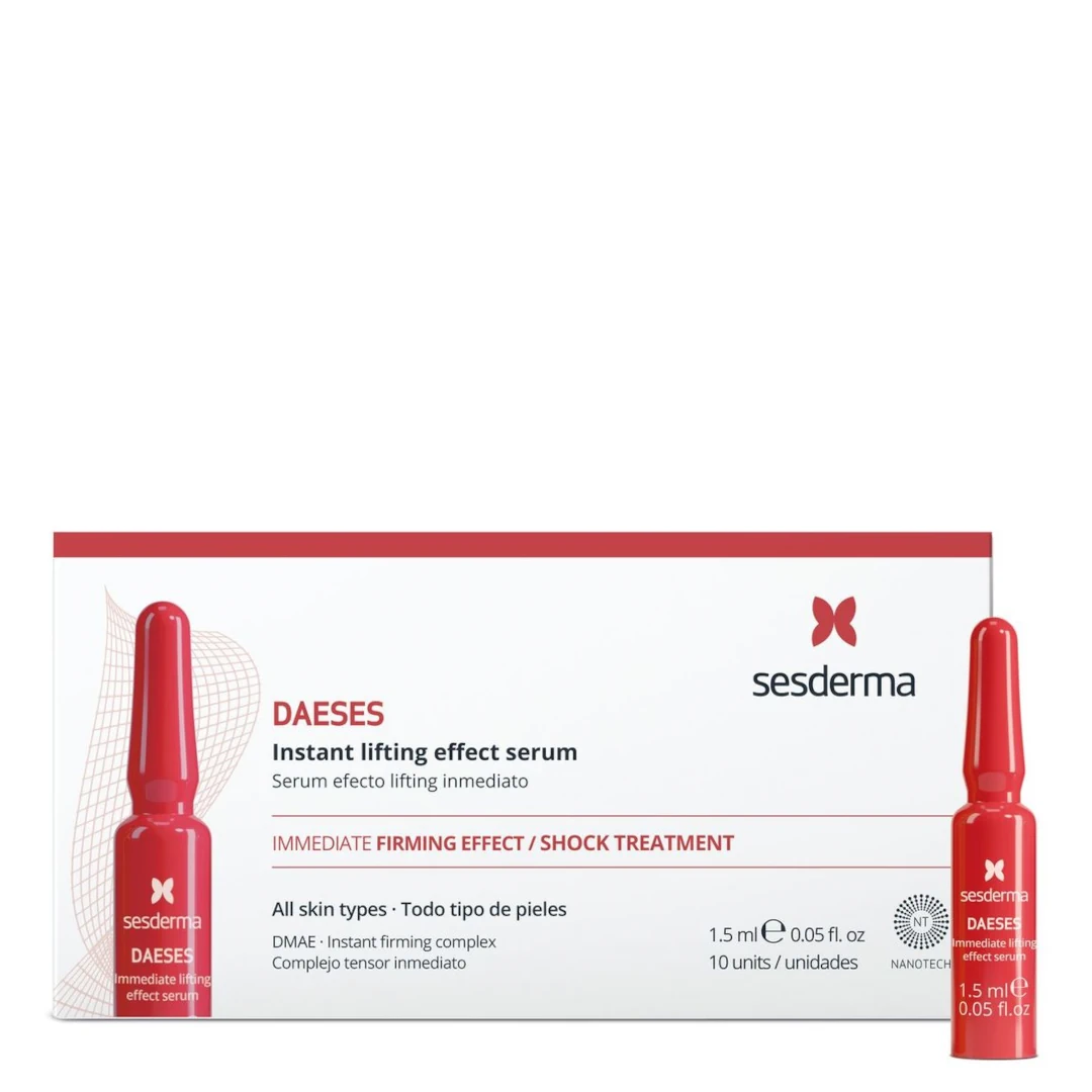 Sesderma daeses ampoules immediate lifting effect immediate offers a superficial and deep firming action on the skin. Thanks to its composition rich in encapsulated active ingredients, the Deses ampoules reaffirm the skin, soften the wrinkle grooves and increase elasticity.