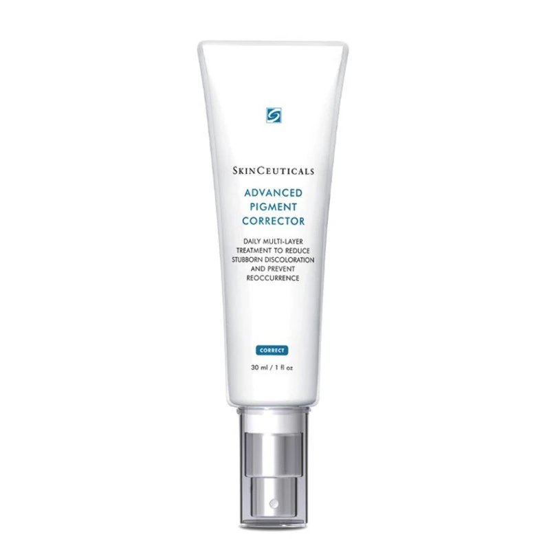 Skinceuticals advanced pigment corrector is a daily multi-action lightweight lotion that reduces the appearance of stubborn skin discoloration and improves skin tone.