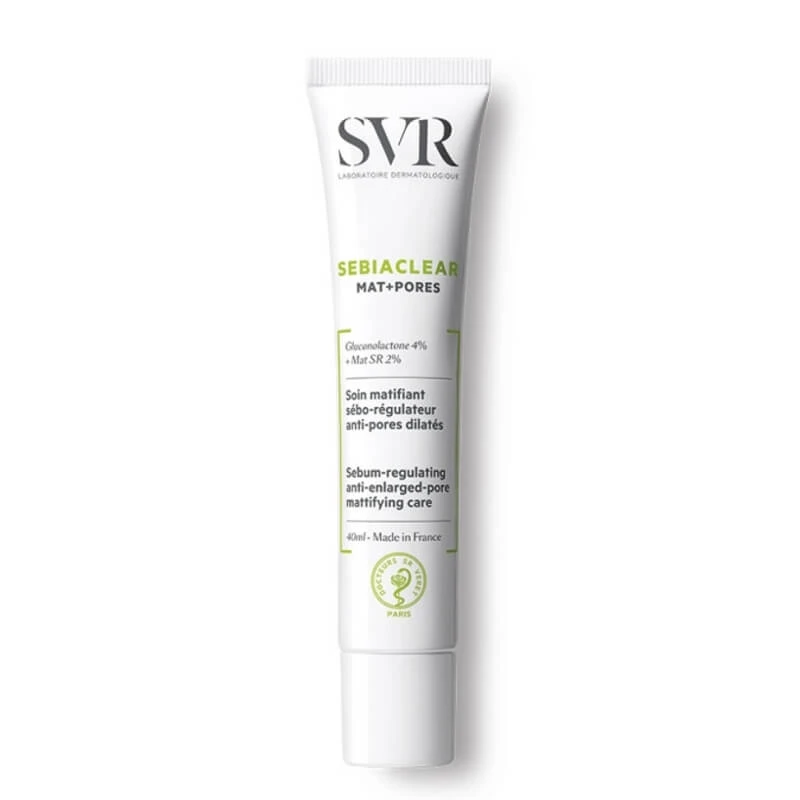 SVR Sebiaclear Mat+Pores is the moisturizing care to calm the dilated pores and fight the excess oiliness. Corrects the pores, moisturizes and matifies the skin for 8 hours. Its gentle AHA-free peeling effect refines the texture of the skin and regulates excess sebum.